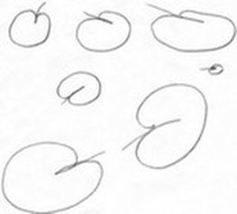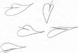Die einfache Blattdarstellung sollte in einem Schwung, also ohne Absetzen des Bleistiftes erfolgen.