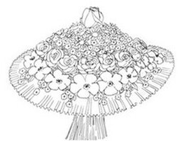flach bis gewölbt; Nasenstrauß: Blüten und Zweige mit langem Stiel, symmetrisch, rund; Brautstrauß: hauptsächlich weiße Blumen mit Myrtengrün (Rosen, Maiblumen, Gardenien, Cyclamen, Kamelien, Stephanotis, Bouwardien), mit Manschette, 20 bis